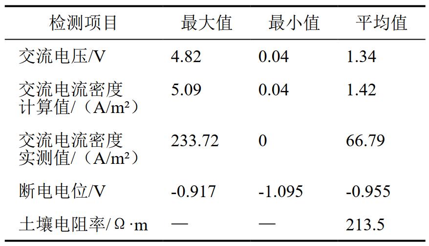 (2)SY/T 0087.6―2021《鋼質(zhì)管道及儲罐腐蝕評價(jià)標準 第6部分:埋地鋼制管道交流干擾腐蝕評價(jià)》標準中對交直流綜合指標進(jìn)行了規定,符合表 2中任一指標即可。在該評價(jià)指標中,所有值均為監測時(shí)段(一般為24小時(shí))內的平均值,標準中同樣未對動(dòng)態(tài)交流雜散電流干擾中可能會(huì )產(chǎn)生的偶發(fā)或頻發(fā)峰值進(jìn)行考慮。如表 2所示,采用另外一個(gè)數據記錄儀采集該測試樁處的斷電電位,最大值為﹣0.917 V,最小值為﹣1.095 V。應用此項評價(jià)指標進(jìn)行評價(jià),則此處無(wú)需采取排流措施。