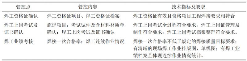 表 1 焊工管理的質(zhì)量關(guān)鍵點(diǎn)