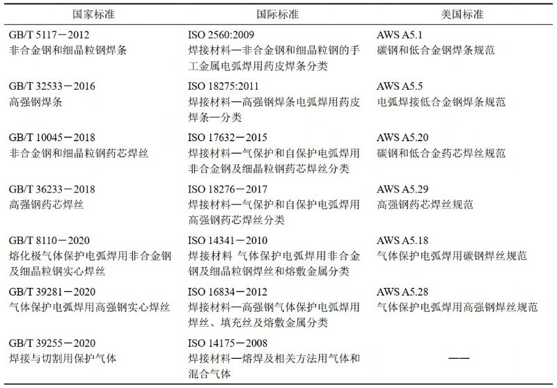 自2012年開(kāi)始,我國開(kāi)始對標相應的國際標準,將焊接材料國家標準進(jìn)行轉化。其中,油氣管道工程相關(guān)的常用焊接材料國家標準對照如表 4所示。