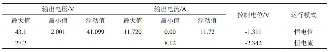 陰保站恒電位儀輸出參數見(jiàn)表 1。