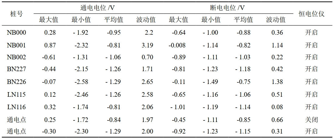 表 1 陰極保護站恒電位儀運行參數
