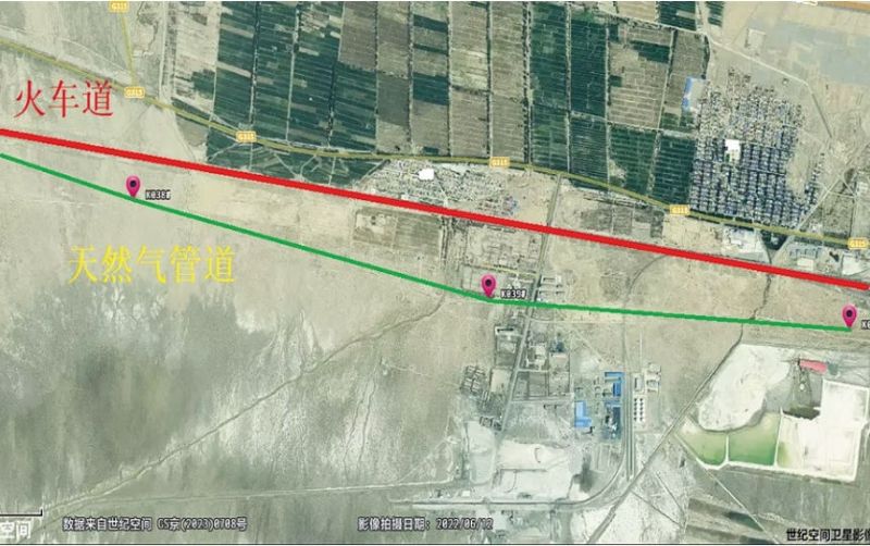 (2)干擾源調查。管道K038#—K040#段與某電氣化鐵路長(cháng)距離并行,垂直最小距離80 m(圖 1)。對并行段管道測試樁處進(jìn)行24 h交流電流密度監測數據分析,發(fā)現交流電流密度的峰值與某鐵路通車(chē)時(shí)間相吻合,故該管段交流雜散電流干擾源主要是鐵路。