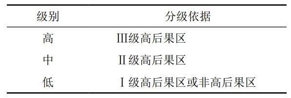 (2)山火易發(fā)性分級。根據全國森林火險天氣等級行業(yè)標準規定的森林火險天氣指數計算標準,結合管道是否采取防火隔離措施,對山火易發(fā)性分為三級(表 1)。