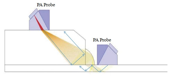 采用相控陣超聲技術(shù),利用基于串列掃查的分區檢測原理實(shí)施檢測。