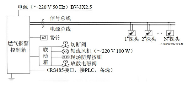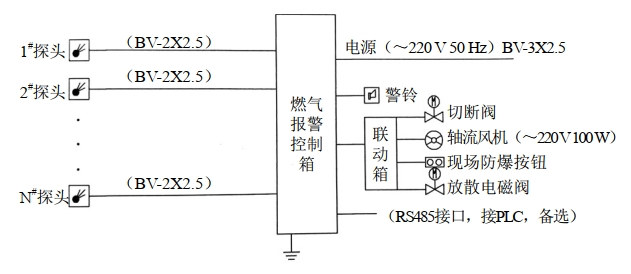 圖 2 可燃氣體報警系統示意圖(分線(xiàn)制)