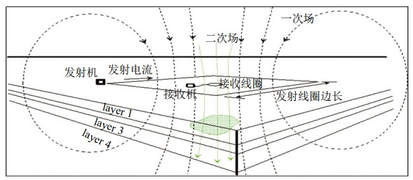 瞬變電磁法(Transient electromagnetic method,TEM)屬時(shí)間域電磁測深法,又稱(chēng)“純異常場(chǎng)法”,它是利用階躍波形電磁脈沖激發(fā),利用不接地回線(xiàn)向地下發(fā)射一次場(chǎng),在一次場(chǎng)的間歇期間(斷電后),測量由地下介質(zhì)產(chǎn)生的感應二次場(chǎng)隨時(shí)間的變化來(lái)達到尋找各種地質(zhì)目標體的一種地球物理勘探方法[3]。