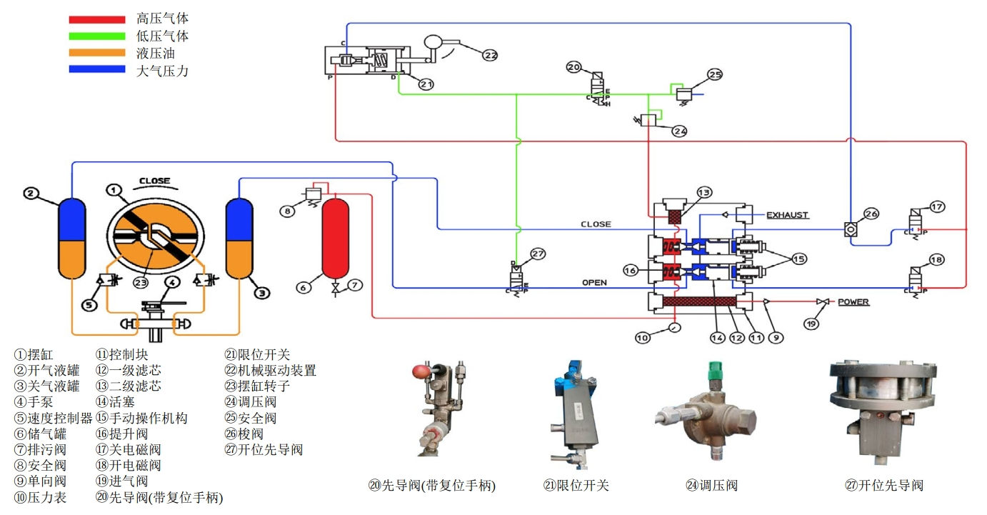 擺缸也稱(chēng)驅動(dòng)器,其工作原理是將動(dòng)力氣體壓力在氣液罐中轉換為液壓,或使用手動(dòng)泵將液壓傳遞到擺缸中,推動(dòng)轉子進(jìn)行旋轉運動(dòng),轉子帶動(dòng)閥桿轉動(dòng)。