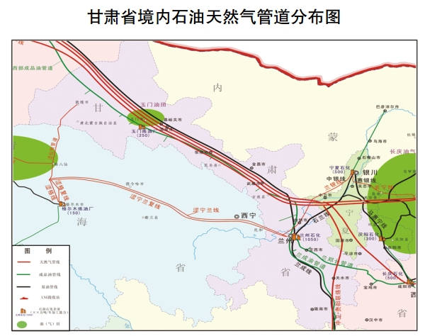 甘肅是連接新疆和中亞油氣資源與內地的唯一重要通道。本世紀之初,隨著(zhù)西部大開(kāi)發(fā)戰略的深入實(shí)施,油氣管道建設大規模展開(kāi),貫穿東西、橫跨南北的17條跨省能源大“動(dòng)脈”加快形成,甘肅省域范圍內油氣干線(xiàn)管道總長(cháng)度接近1萬(wàn)公里,位居全國前列。