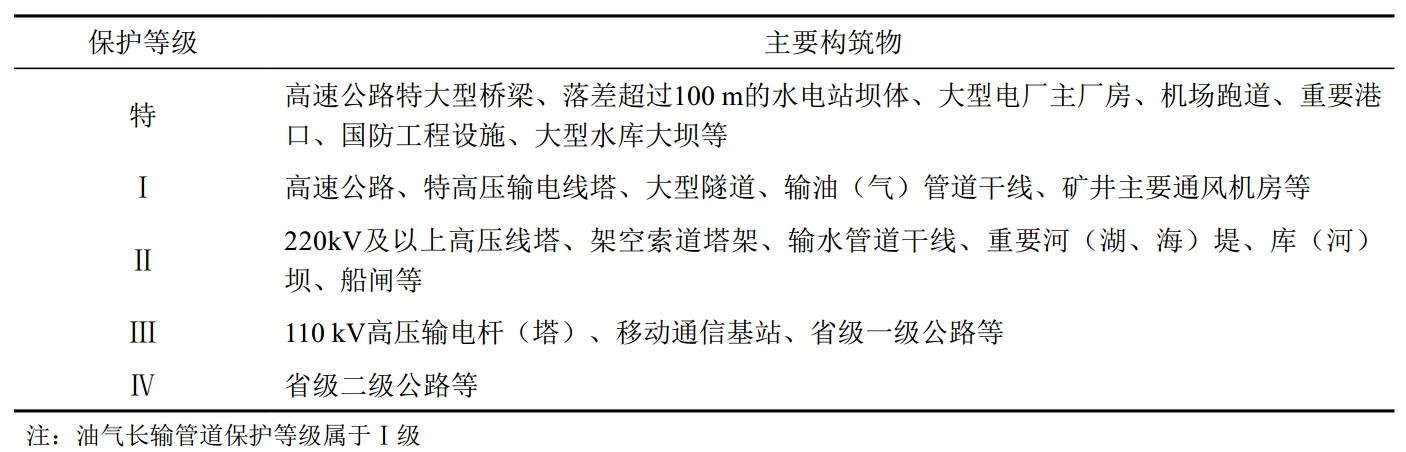 表 1 礦區構筑物保護等級劃分