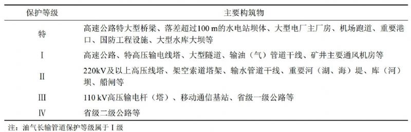 構筑物受護范圍應當包括受護對象及其圍護帶。圍護帶寬度必須根據受護對象的保護等級確定,可按規定的數值選用(表 2)。