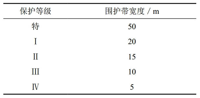 表 2 構筑物各保護等級的圍護帶寬度